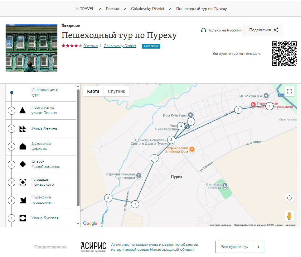 Все маршруты размещены в свободном доступе на международной платформе IZI.TRAVEL по ссылке: https://izi.travel/ru/3501-asiris. Изучить треки и перейти на аудиогиды также можно с сайта Агентства «АСИРИС». Воспользоваться маршрутами могут туристы, туроператоры, экскурсоводы и все, кто интересуется историей Нижегородской области.
