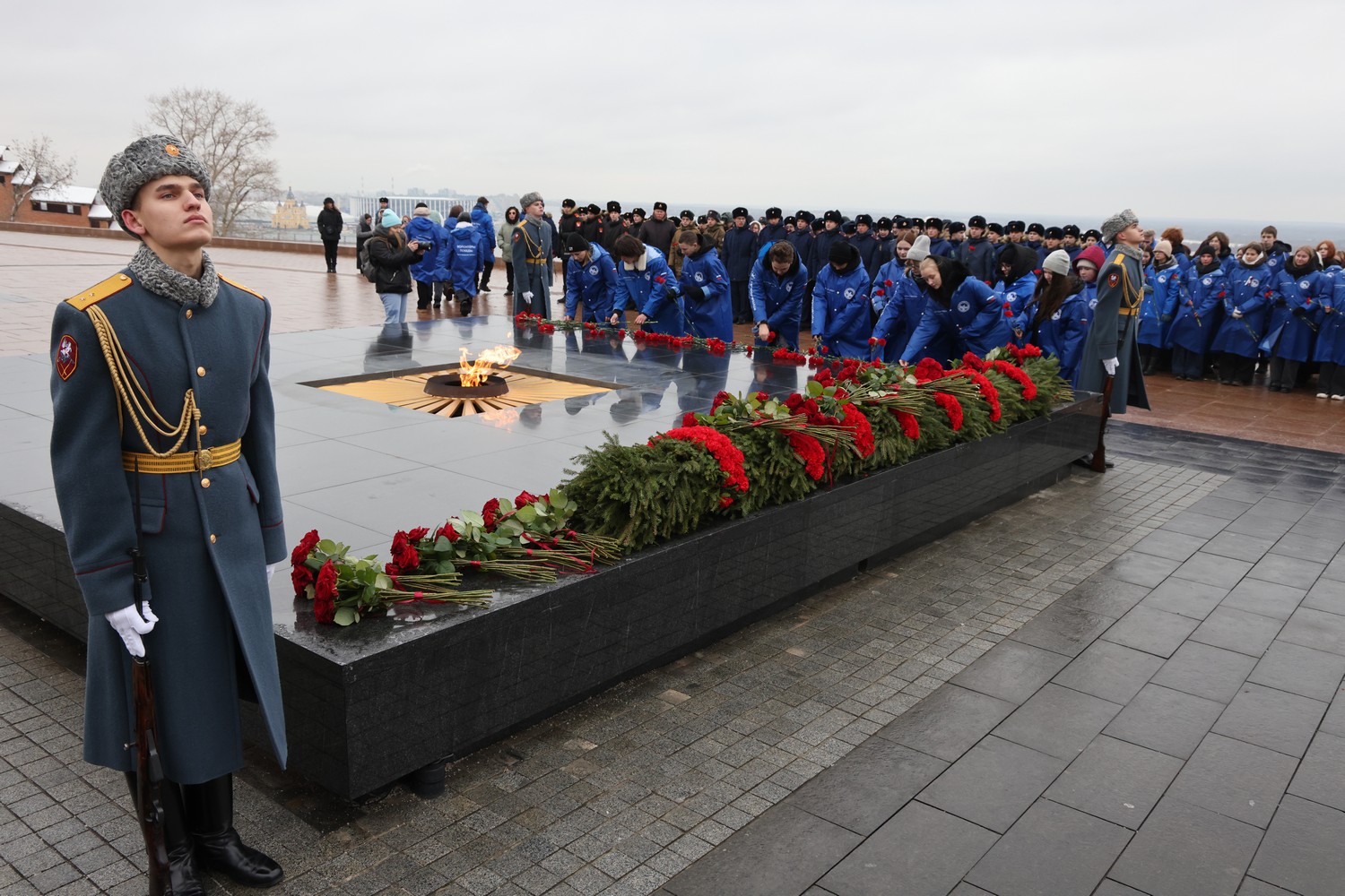 Губернатор Нижегородской области возложил цветы к мемориалу «Вечный огонь» и встретился с семьями Героев России