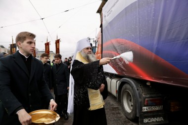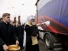 Он также благословил участников гумконвоя и окропил груз святой водой.