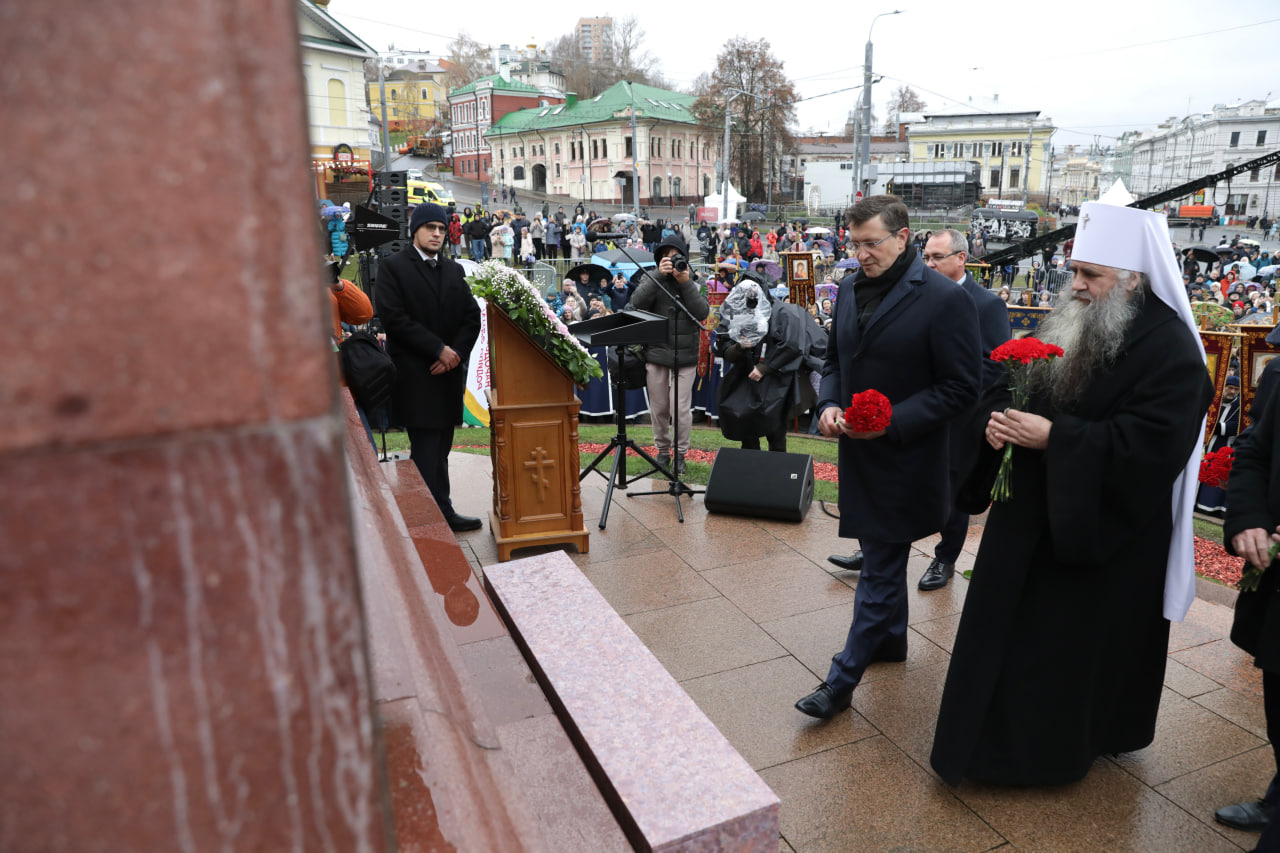У памятника Минину и Пожарскому собрались представители власти, депутатского корпуса, различных конфессий, ветеранских объединений, общественных организаций, неравнодушные нижегородцы и гости города.