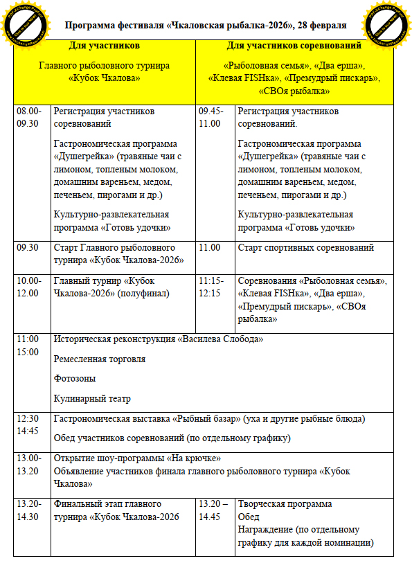 Международный фестиваль подледного лова «Чкаловская рыбалка — 2026» состоится в последний день зимы, 28 февраля, в Чкаловске, на слиянии рек Волги и Санахты. Он организован при поддержке правительства Нижегородской области и в соответствии с задачами национального проекта «Туризм и гостеприимство».