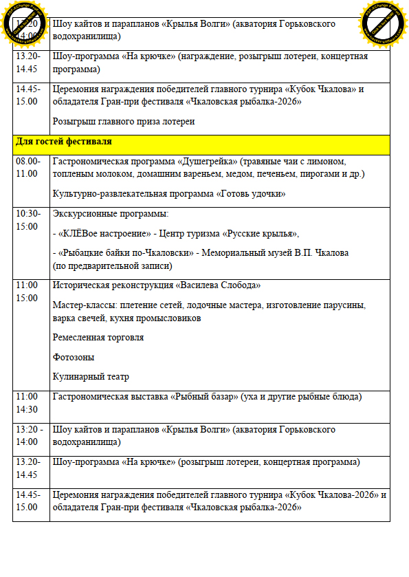 Также у них будет возможность посетить гастрономическую выставку «Рыбный базар», кулинарный театр от известных шеф-поваров ведущих нижегородских ресторанов, отправиться на иммерсивную экскурсию по «Василевой слободе» и пр.