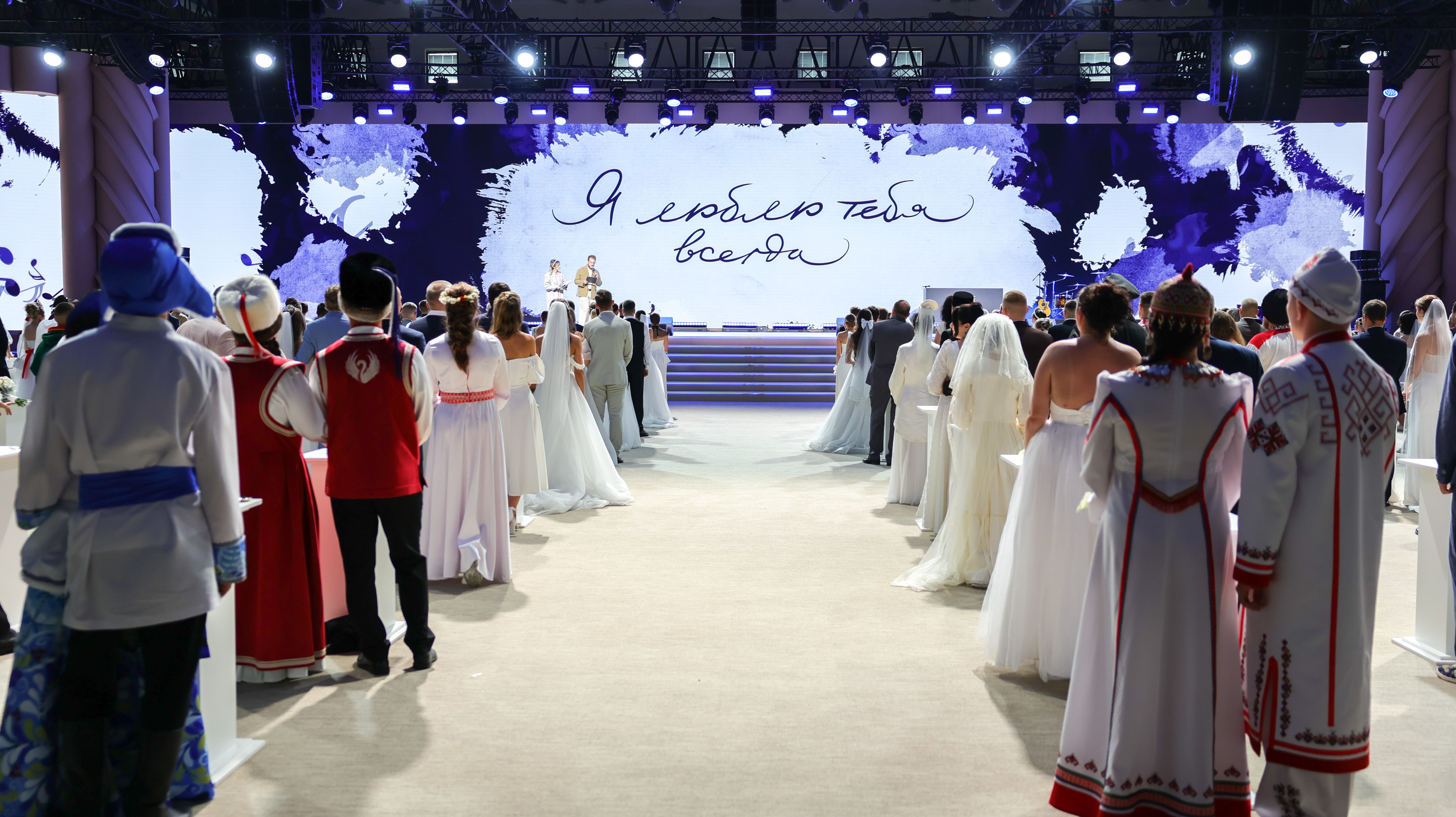 Напомним, I Всероссийский свадебный фестиваль состоялся в 2024 году в рамках Международной выставки‑форума «Россия». На нем семейный союз заключила 221 пара. В 2025 году в Национальном центре «Россия» скрепили свой союз еще 206 новобрачных. Событие стало ежегодным и проводится в праздник святых Петра и Февронии.