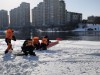 На этом этапе для спасения, транспортировки и оказания помощи условным пострадавшим привлекли суда на воздушной подушке и специализированную высокопроходимую пожарно-спасательную технику.