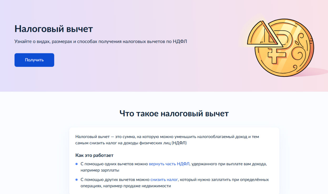 Жизненная ситуация «Налоговый вычет» доступна на портале госуслуг