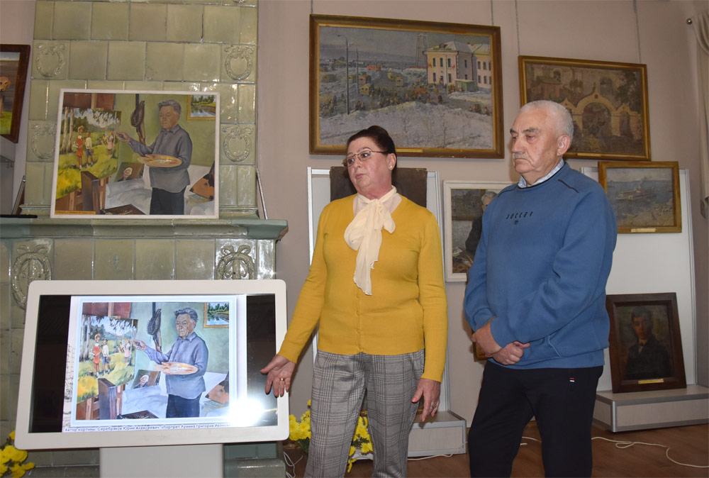 На выставке также был представлен портрет Григория Ивановича. Художник Юрий Алексеевич Серебряков, автор картины, с радостью поделился воспоминаниями о её создании и совместной работе с Григорием Ивановичем.