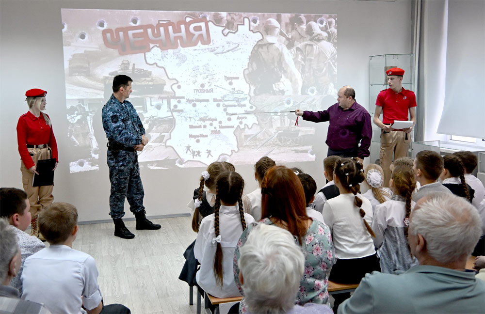 Участники боевых действий в Чечне — ветеран МВД, кавалер ордена Мужества Юрий Крайнов и ветеран МВД Алексей Зыбин поделились с ребятами и членами Совета ветеранов историями из своей службы, которые зрители слушали с замиранием сердца. Позже мужчины ответили на вопросы слушателей — о взаимодействии с сослуживцами, условиях, в которых приходилось воевать, встречах с противником, ранениях, чувствах и мыслях, которые царили у каждого из них в момент непростых испытаний, с которыми пришлось столкнуться по воле судьбы.