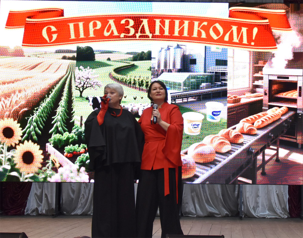 Торжество началось с показа слайд-шоу из фотографий, демонстрирующих насыщенную жизнь аграриев — в полях, на фермах, с крупных сельскохозяйственных форумов и конкурсов, которое сопровождалось тематической песней в исполнении солистов ДК Марианны Мальковой, Ирины Барминой, Гульфии Пахуриной и Евгения Сахарова.